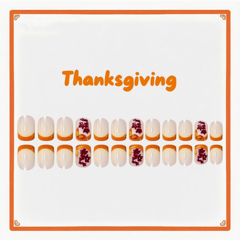- 【Package Contents】24Pcs Fall Maple Leaves French Tip Press on Nails +1 Nail File + 24Pcs Jelly Glue Stickers+1 Alcohol Cotton+1 Wooden Stick.No matter the size or width of your nails, you can choose the most suitable false nails for yourself.