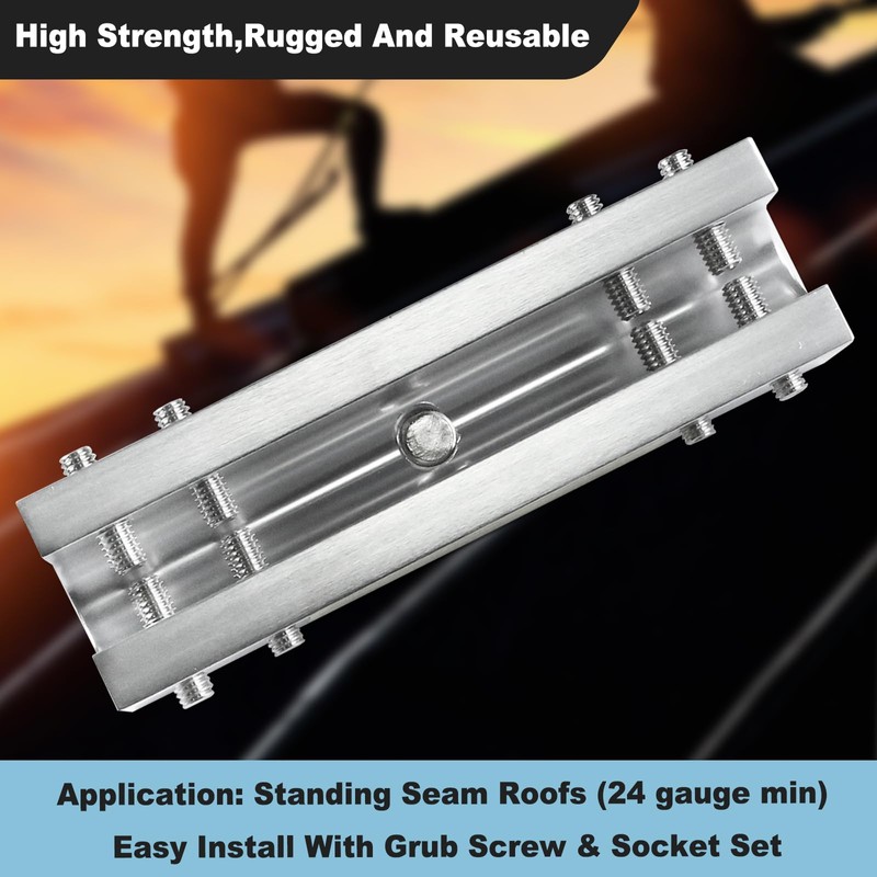 - 👨🔧WHAT YOU GET: 1 Pack Standing Seam Roof Anchor with manual, swivels 360 degrees anchor point and 8 stainless steel set screws, with this Standing Seam Roof Anchor Clamp, you can always stay safe.. Our worry-free period is 18 months, if you are not satisfied, you can contact us and we will make it right or refund you, whichever you prefer.