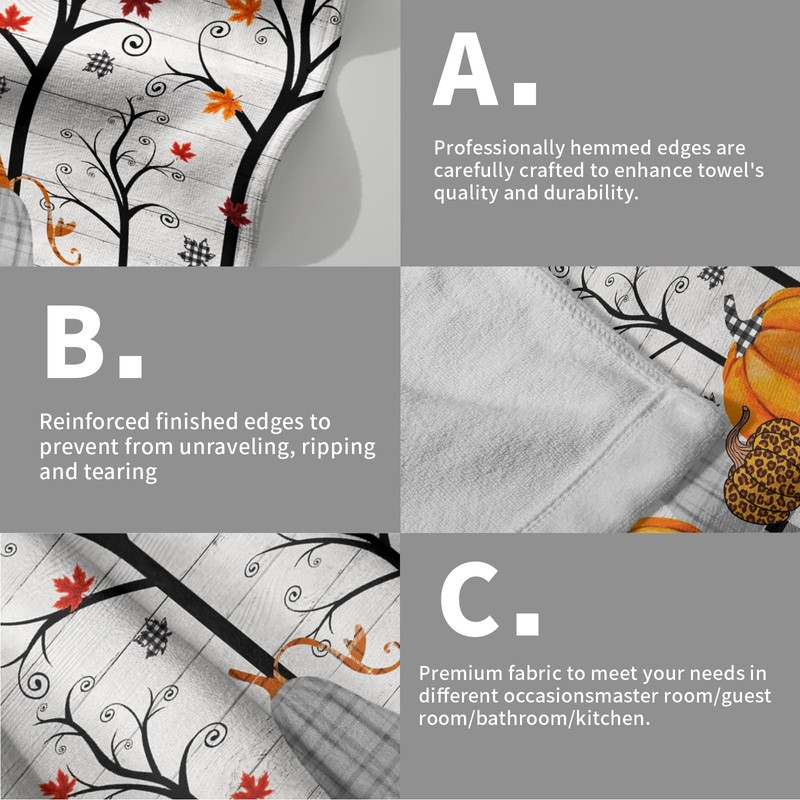 - 【Unique Design】Hand towels for bathroom are single-sided printed with unique prints and vivid pattern. Fall forest, pumpkins and maple leaves. There are black and white buffalo plaids in the ends of the towel.The towel absorbent and sturdy, long-lasting durability. The vibrant colors will not fade after several times washing, and not easy to linted. It can not only decorate your bathroom but also create a cozy look for your home, a nice autumn homeware item.