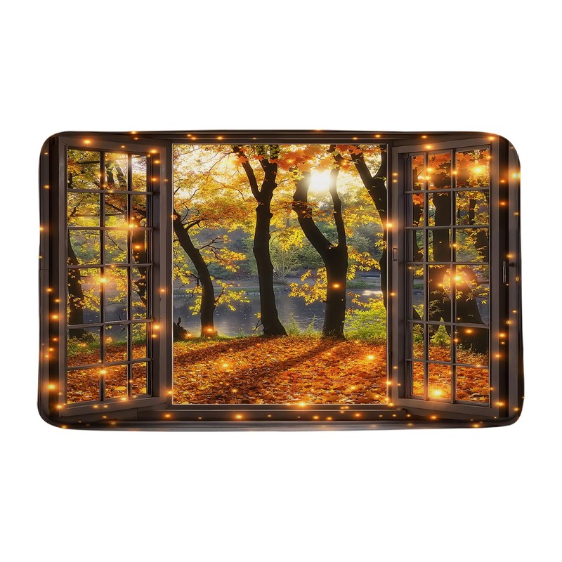 Fall Window Bath Mat Autumn Maple Leaves Forest Bathroom Mat Rug Memory Foam Doormat,17.8x29.5 Inch