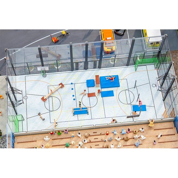 - Extensive gym equipment consisting of two handball goals and basketball hoops, a large and two small boxes, several soft floor mats, trampoline, jumping board, horizontal bar, gymnastics bar and gym bench as well as various balls. Also suitable as a matching accessory for the premium model 2019 "gym", item no. 130613.