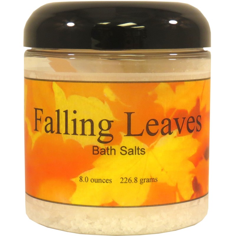 Close your eyes and relax in a warm bath with our bath salts. Our baths salts are made with European Spa Salts. European Spa Salts are solar evaporated and harvested from the pristine waters of the Mediterranean Sea. They are produced using the ancient method of solar evaporation in a region that is free of pollution and has high evaporation rates. European Spa Salts are one of the purest salts in the world. This is a proprietary blend of various sizes of salt crystals. Our bath salts come with a scoop for easy measuring. Falling Leaves is a delightful fall fragrance! It is everything fall is. It is crisp leaves under your feet when you are walking through the park on a misty day. It is refreshing, delightful and clean. It is the cool brisk air and the smell of fall. This fragrance is phthalate free.