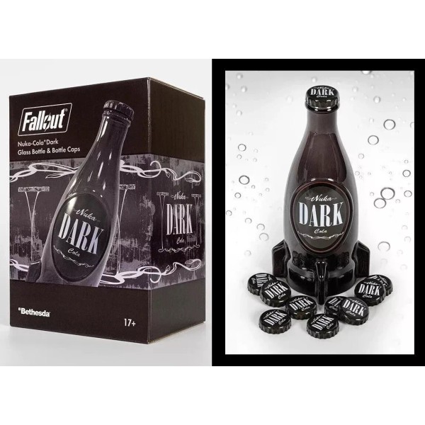 Fallout 4 Nuka-Cola Dark Glass Rocket Bottle + 10 Bottle Caps Replica Figure