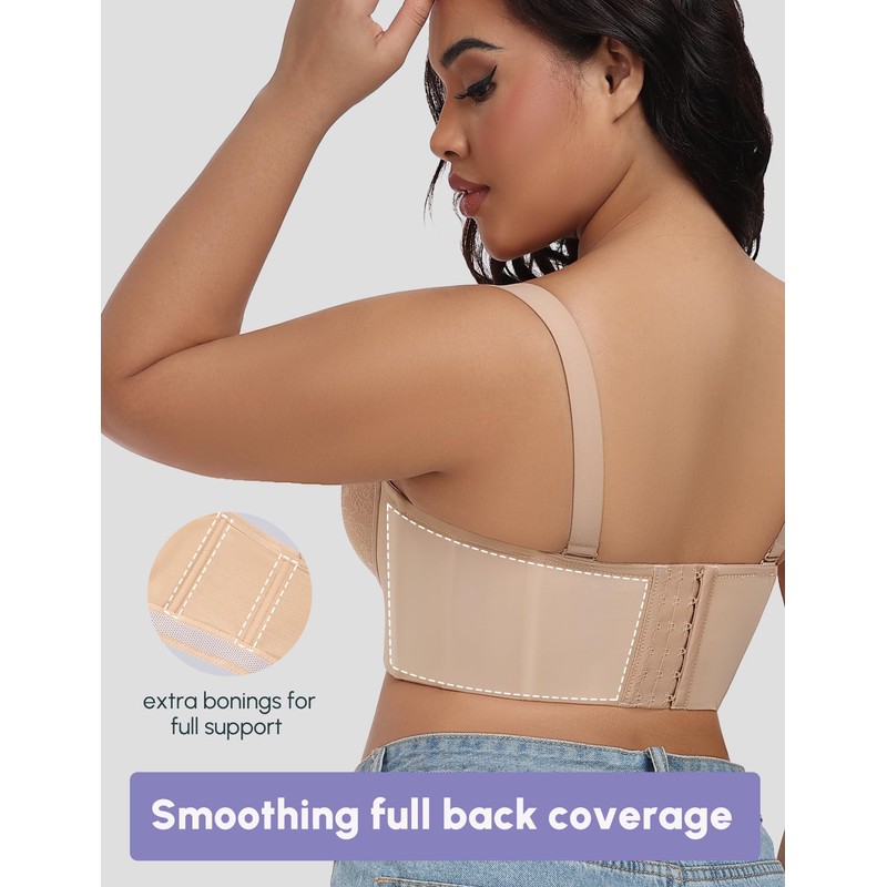 - The longline strapless bra is lightly lined, deep cup designed with silicone edging to embrace your bust and prevent falling down.