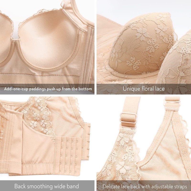 FallSweet Push Up Bras for Women Corset Top Bustier Padded Underwire Bra Add One Cup (Beige-Lace,36B)