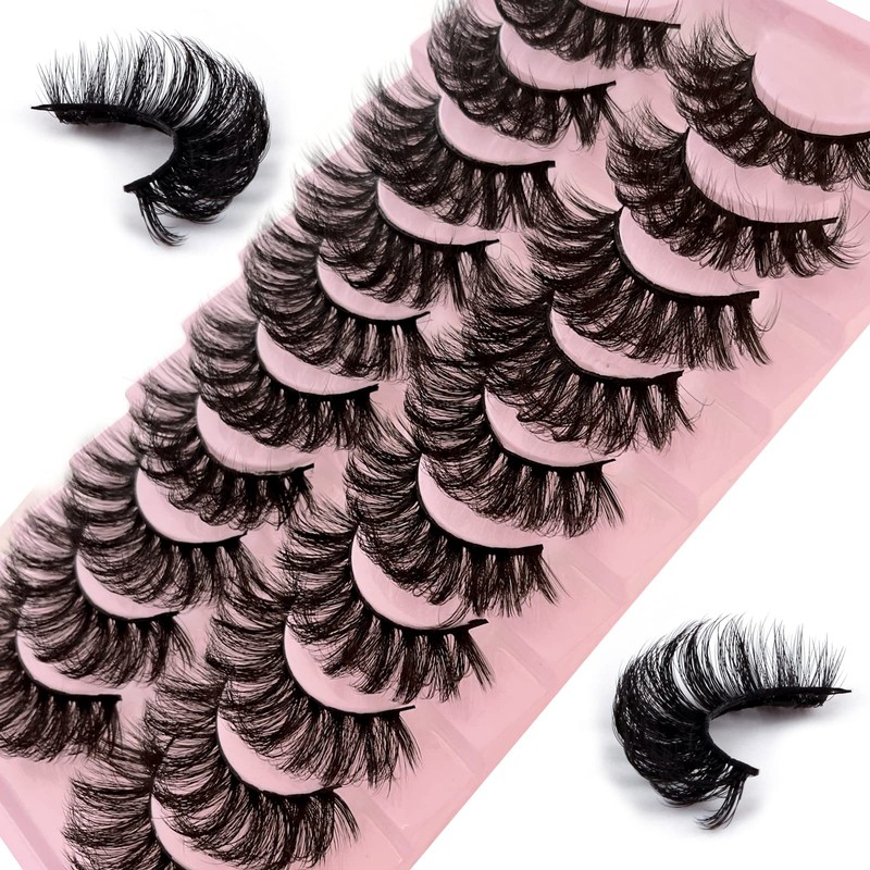 False Eyelashes, 10 Pairs, 7D Artificial Eyelashes Set, Natural Look, Reusable, Dramatic Eyelashes, Handmade Mink Eyelashes (7D31)