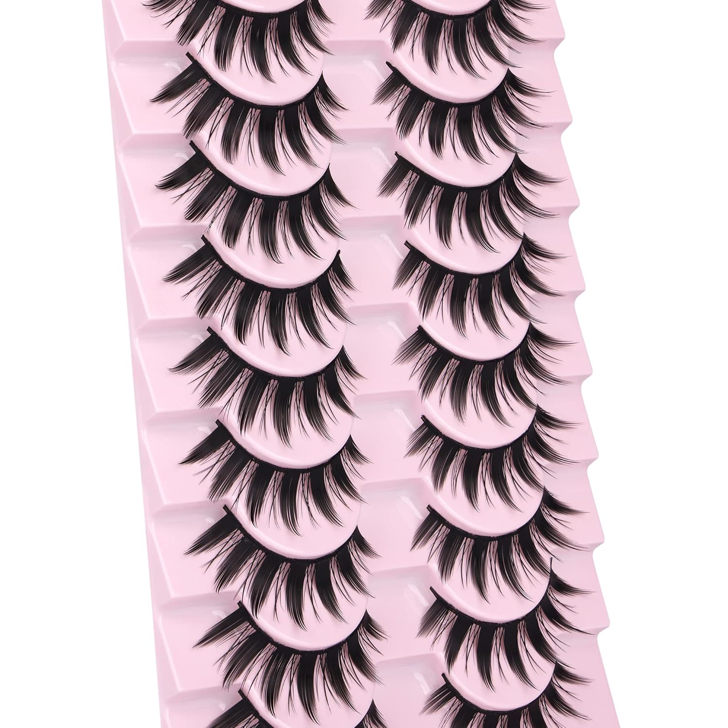 False Eyelashes 10 Pairs Manga Lashes Japanese Style Anime Lashes 16 MM Spiky 8D Full Strip Doll Lashes by FANXITON