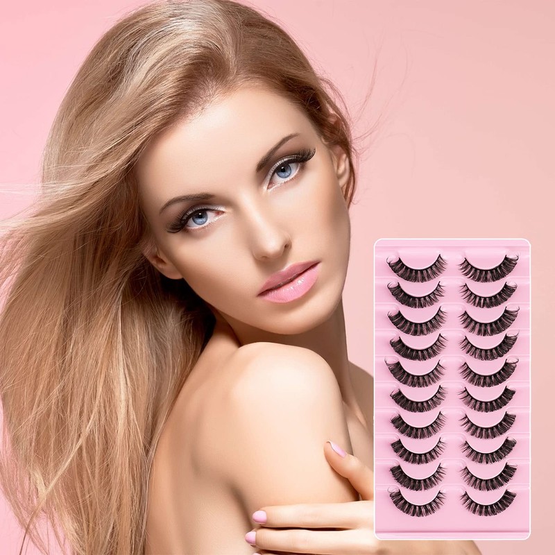 False Eyelashes, 10 Pairs Russian Strip Lashes Fluffy Wispy 3D Effect False Lashes D Curl Cat Eye Lashes Reusable Fake Eyelashes Thick Volume Faux Mink Lashes Strip Natural Fluffy Lashes