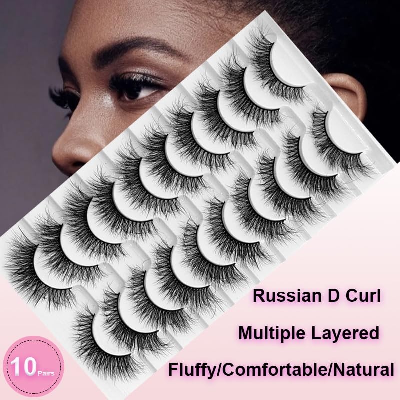False Eyelashes Faux Mink Lashes Russian Strip Lashes DD Curl Natural Look Fluffy 16mm 6D Messy Eye Lashes Cotton Band Soft Reusable Look Like Extensions 10 Pairs Cross Lashes Pack