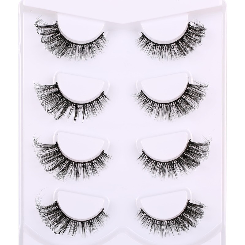 False Eyelashes Fox Eye Lashes 6D Wispy Eyelashes Natural Look Cat Eye Lashes Wispy Fluffy Faux Mink Lashes Natural False Lashes Pack by Himirell 4 Pairs