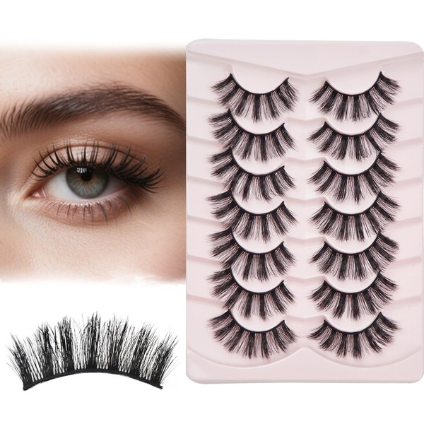 False Eyelashes Natural Fluffy Wispy Lashes Mink Lashes 7 Pairs/Pack (10-18mm, D01)