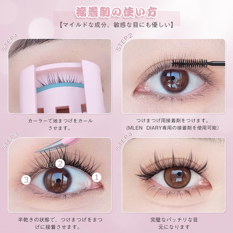 (Highly Safe False Eyelash Adhesive) MLEN DIARY specialty glue is a popular product for its strong adhesion and resistance to peeling. We have tested many times during the manufacturing process. It is not directly applied to the skin, but is hypoallergenic, non-abrasive, odorless.