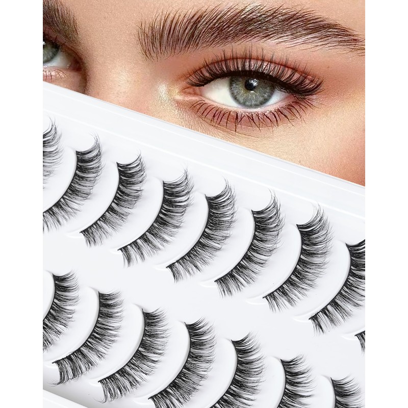 False Lashes Natural Lashes Wispy False Eyelashes Natural Eyelashes Fake Eyelashes Fake Lashes Pack 10 Pairs 12mm Calla Lily