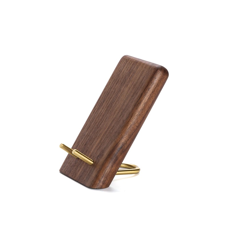 Faluber Wooden Phone Stand with Brass Stake for Tabletops and Desks, Stylish, Walnut Wood Grain Universal Holder, Compatible with Cell Phones, Smartphones, Tablets
