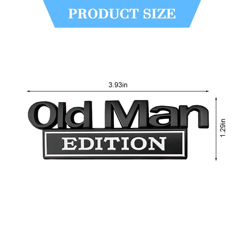 -Resistant: This old man edition car emblem is crafted from high grade zinc alloy material which sturdy and durable, built to withstand water and dust.