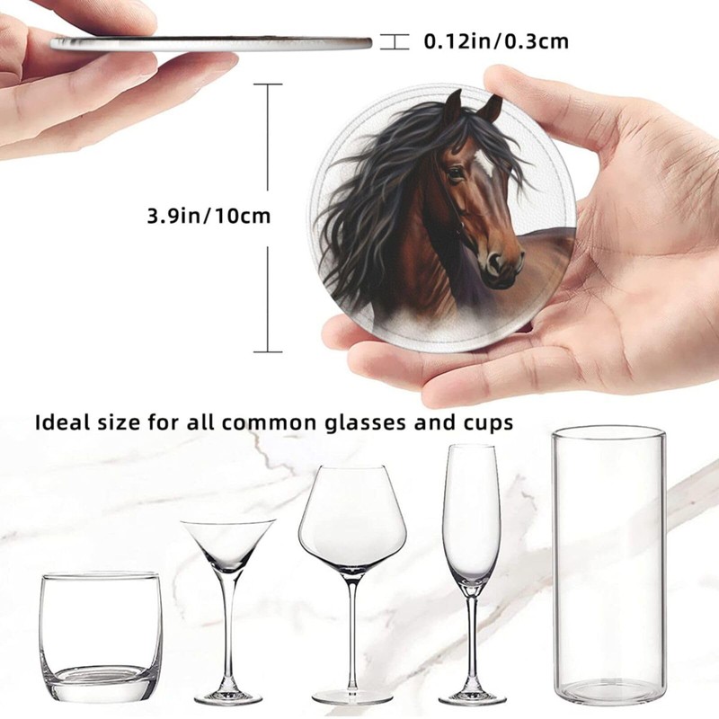 - SUITABLE SIZE - 3.9x3.9x0.12 inch/10 cm x 10 x 0.3 cm. A Standard Round 4-inch diameter drinks coasters can hold ceramic mug, beer glass, coffee cup, plastic cup and some small cutlery, almost all types of cups. No matter which cup it matches with, it is very beautiful ornament.6 Piece Coasters, including the holder.