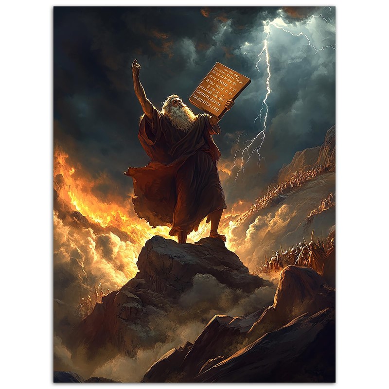 - 🖼️ Classic Religious Art - Moses Ten Commandments Painting:This stunning canvas artwork depicts the powerful moment when Moses holds the Ten Commandments high on Mount Sinai. A beautiful representation of classic religious art, it brings biblical history to life in your home