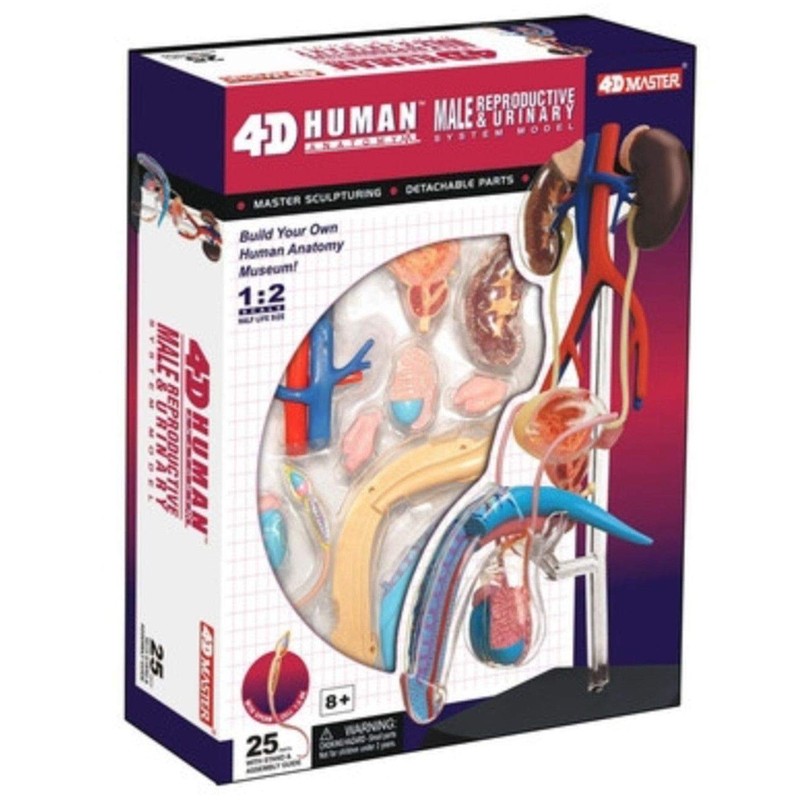 D Human Anatomy Male Reproductive and Urinary System Model 3D Cutaway Puzzle Human Body Anatomy Model from 4D Master. A fun way to learn about Human Anatomy 25 Pieces with Stand and Assembly Guide Up to Medical Educational Quality Fine Detailed Sculpturing with Hand Painted Parts and Highly Detailed Finish Product Scale:1:2 (half life size). Assembly of puzzle required, pieces snap into place and finished puzzle is of display model quality. Collectible Quality - New Type of Puzzle, Build Your Own Human Anatomy Museum. For ages 8 years and up.