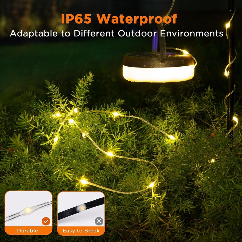 Crafted from copper wire and transparent PVC, this outdoor waterproof, portable, and stowable string light provides clear, 360-degree lighting. It is highly flexible and tangle-resistant, capable of withstanding bending without damage. With an IP65 waterproof rating, it is suited for a wide range of outdoor applications.