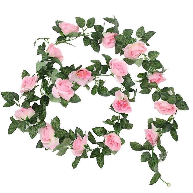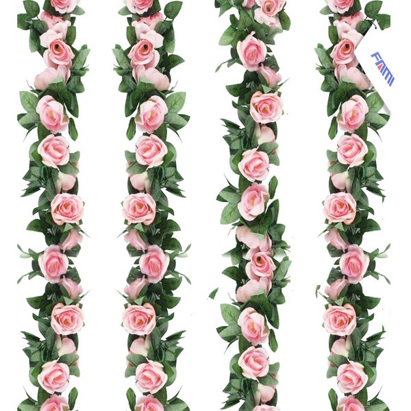 FAMI 4PCS(28.8 FT,16 Flowers) Fake Rose Vine Flowers Plants Artificial Flower Hanging Rose Ivy Home Hotel Office Wedding Party Garden Craft Art Décor-Pink