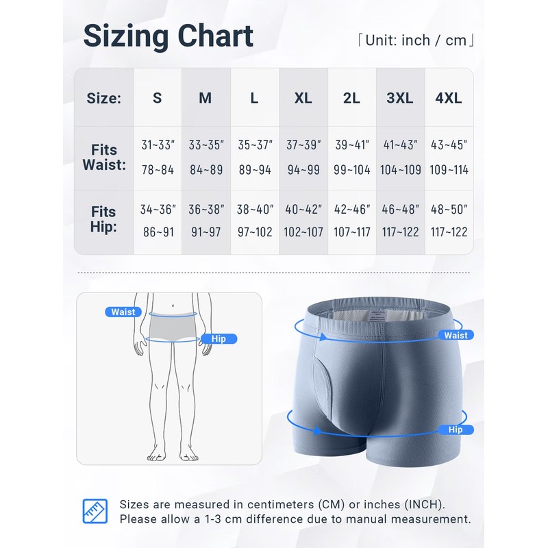 FAMI HELPER 3 Pcs Men's Incontinence Pants Incontinence Boxer Brief with Absorbent Pad 300 ML Urine Volume Cotton Washable Reusable Leakproof Incontinence Pants for Men Misty Blue Size 4XL