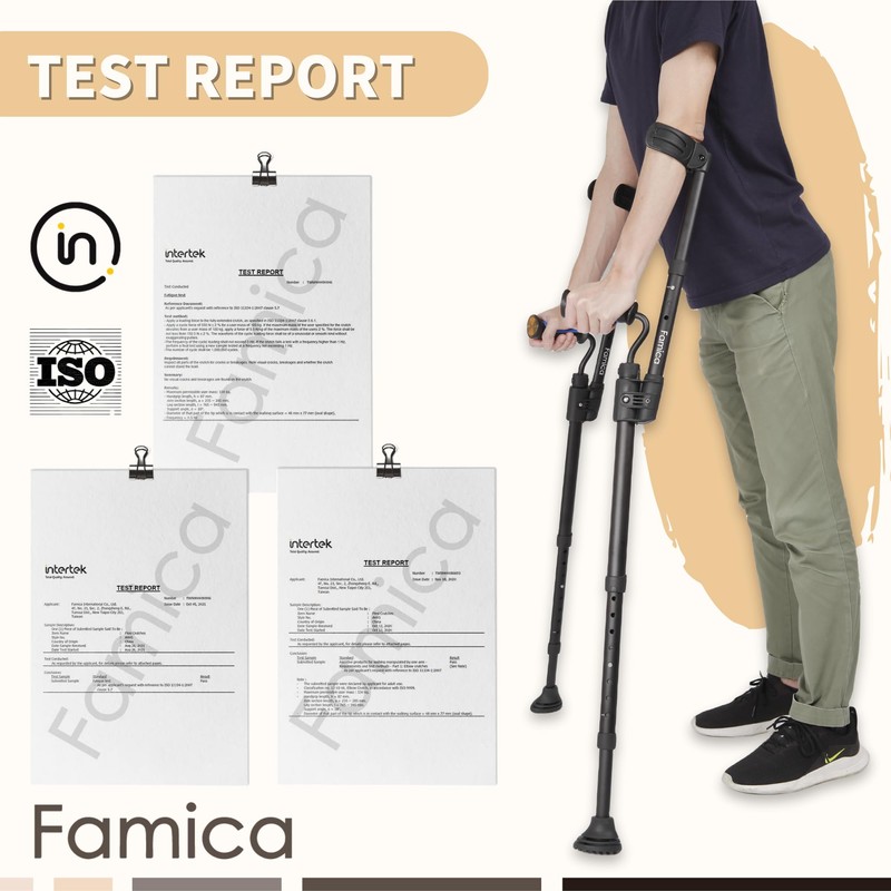 - EXCEPTIONALLY DESIGNED FOR MOBILITY SUPPORT - Famica Flexi Crutches set a new standard for orthopedic crutches designed for temporary injuries or chronic pain conditions. As high-quality, durable mobility aids, they aim to ease mobility and enhance the quality of life during the recovery process. With their comfortable padding and ergonomic design, our portable crutches are not only a means of support but also a testament to resilience and recovery.