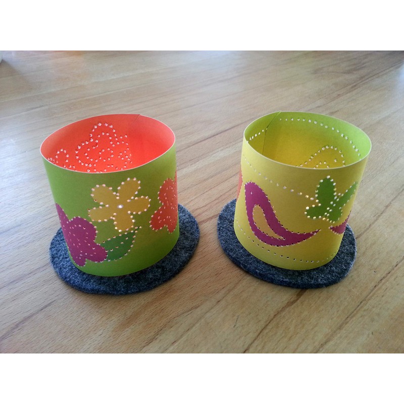 The craft sheets for lanterns are made from environmentally friendly 170 g/m² recycled paper and are also printed in colour on both sides. Two different lanterns are shown on each craft sheet. The front is always multicoloured, the back is plain. This results in several variants, depending on which side you take outwards when gluing.
