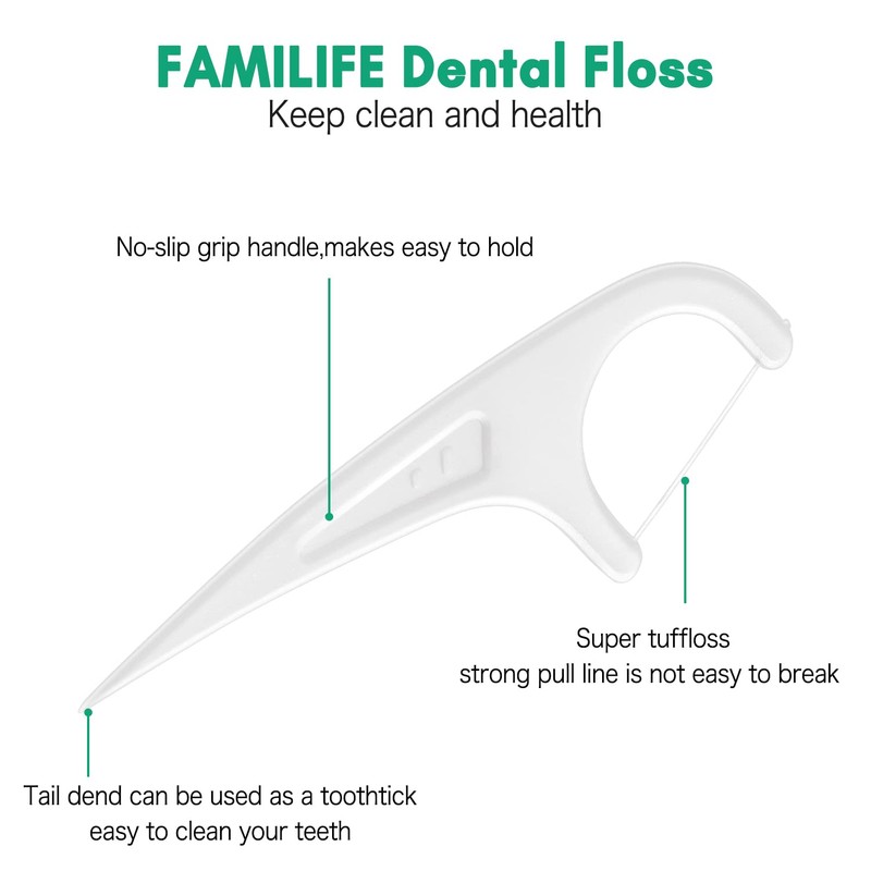 - 2-IN-1 FUNCTION: On the one hand, FAMILIFE disposable flossing can remove the debris that the ordinary toothbrush couldn't touch, keep your teeth clean. On the other hand, the end of the handle could be used as the toothpicks to help you easier to pick your teeth.