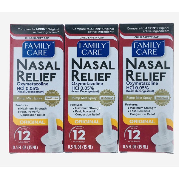 Family Care Nasal Relief Pump Mist Spray .5OZ [ Pack of 3 ]