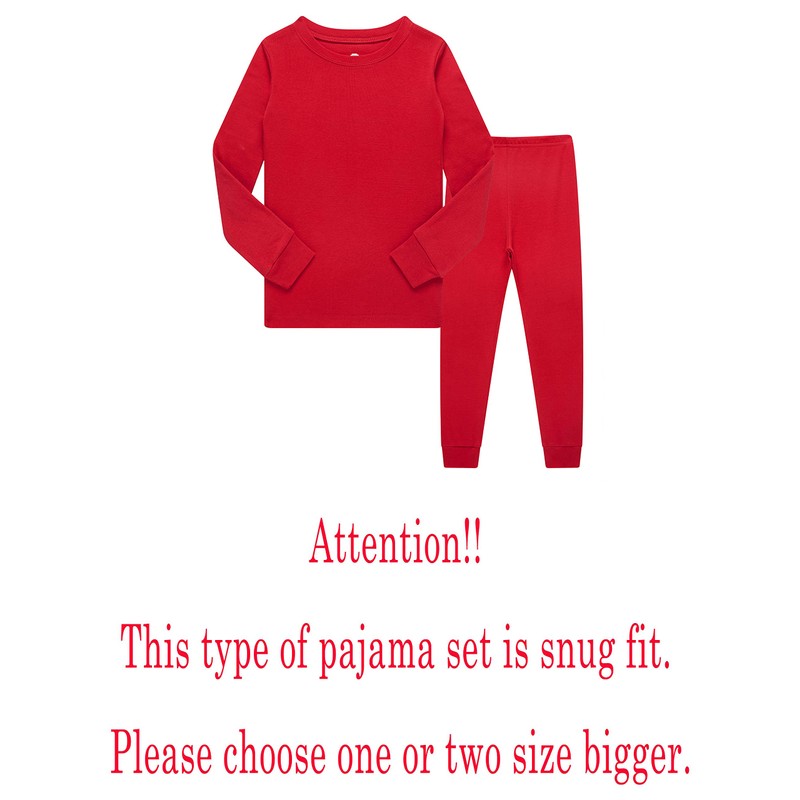 Family Feeling Big Girls Boys Christmas Long Sleeve Pajamas Sets Cotton Holiday Pyjamas Kids Solid Pjs Red Size 8