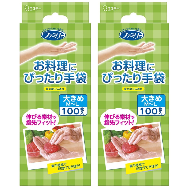 Family, Household Gloves, Bulk Purchase, Perfect for Cooking, Gloves, Large, Medium to L, Translucent, 100 Sheets x 2 Pieces, Left and Right Use, Cooking, Cleaning, Hair Dying, Disposable (Food Sanitation Act Compliant)