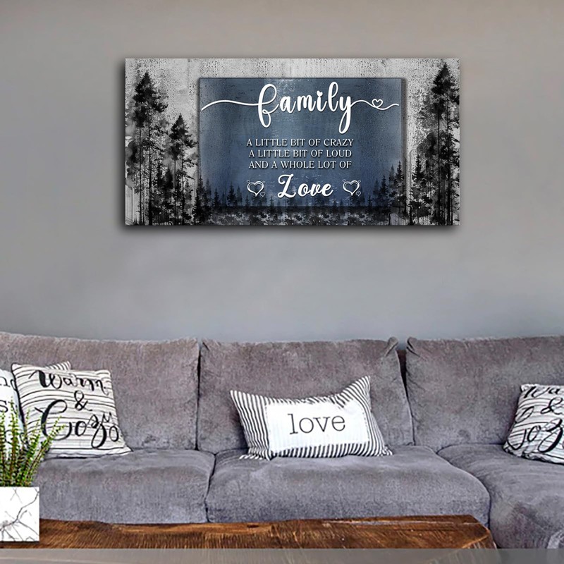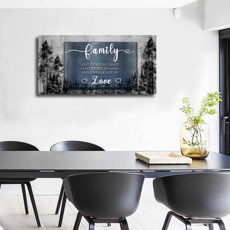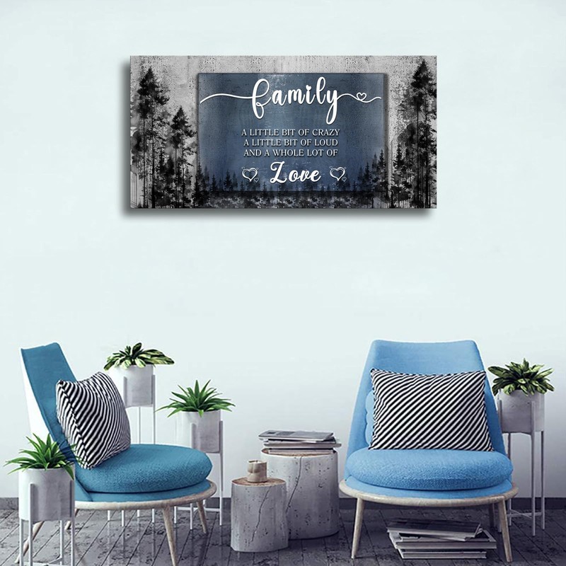 Family Quotes Canvas Wall Art,Family a Little Bit of Crazy Loud Love Wall Art for Living Room,Inspirational Motto Canvas Prints Poster Stretched Framed Artworks for Home Bedroom Office Wall Decor