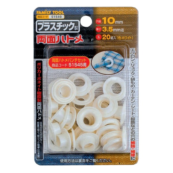 Family Tool (Family Tool) Plastic Double Sided Grommets 10 mm White 20 Pack 51549
