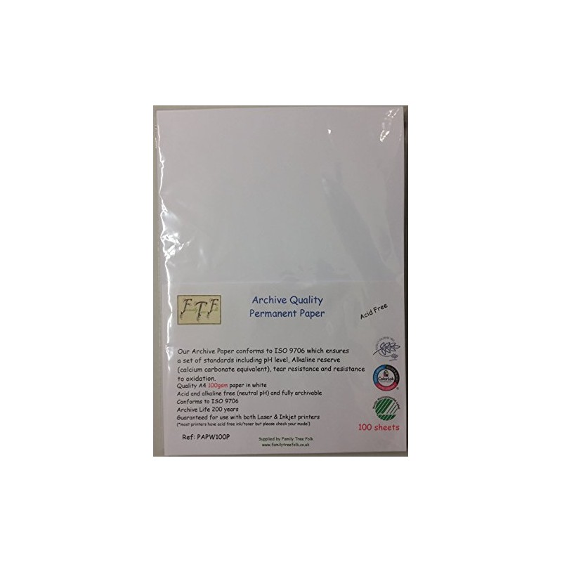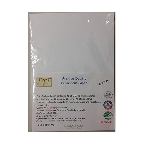 Family Tree Folk Acid Free Archival A4 White Paper 100gsm 100 Sheet Pack