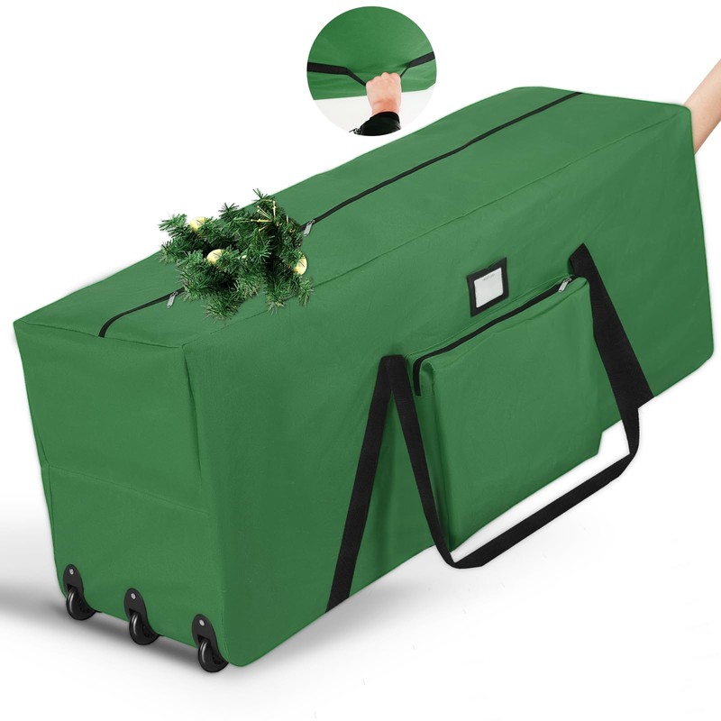 FAMIROSA Rolling Christmas Tree Storage Bag 9 ft, Xmas Artificial Storage Bags With 3 Swivel Wheels, 600D Oxford Fabric Box With Reinforced Handle for Disassembled Tree, Green