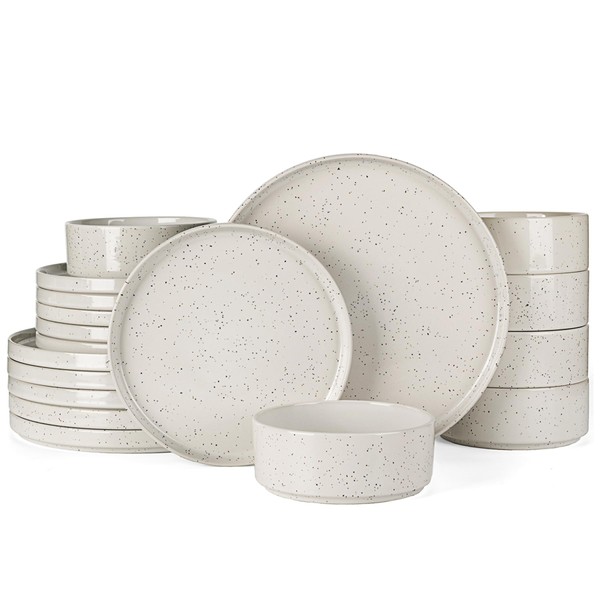Famiware Nebula Plates and Bowls Sets, 18 Pieces Dinnerware Sets, Dishes Set for 6, Creamy White with Colorful Speckles