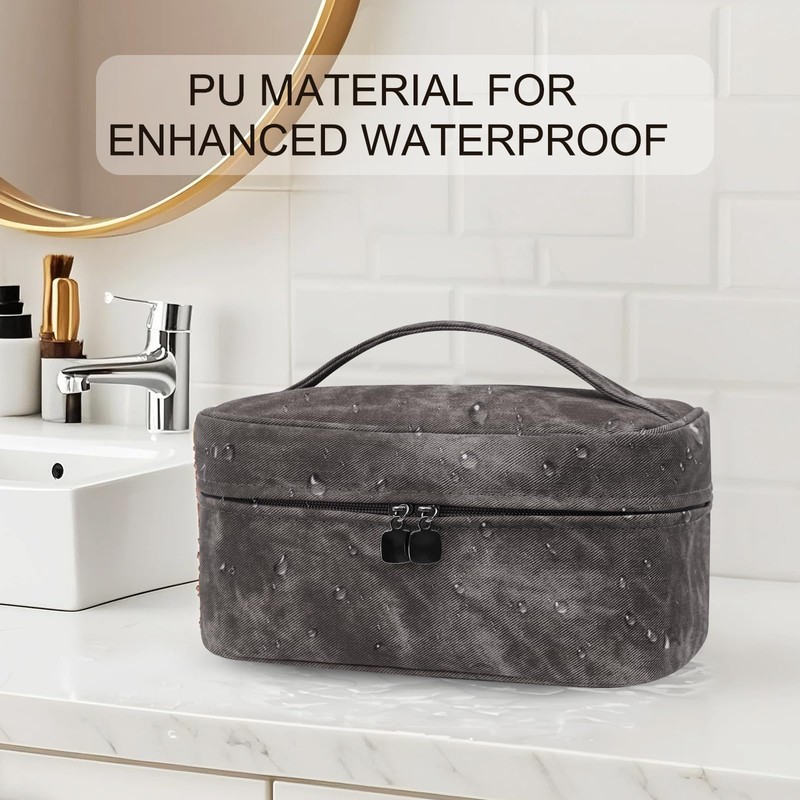 - Spacious & Well-Organized: Measuring 24 x 16 x 12 cm (9.45 x 6.3 x 4.72 inches), this makeup bag offers ample room for cosmetics, skincare, and toiletries. Its smart layered design keeps items neatly sorted for quick access and clutter-free storage