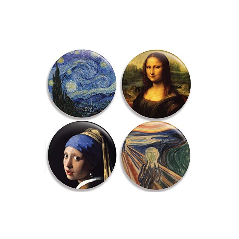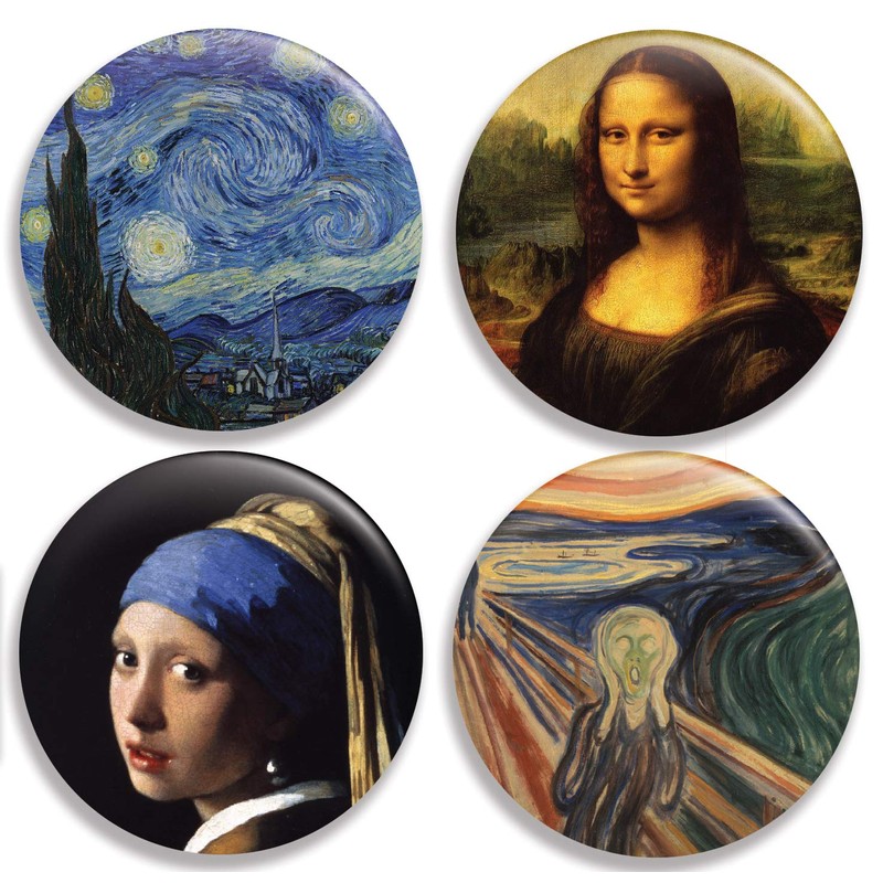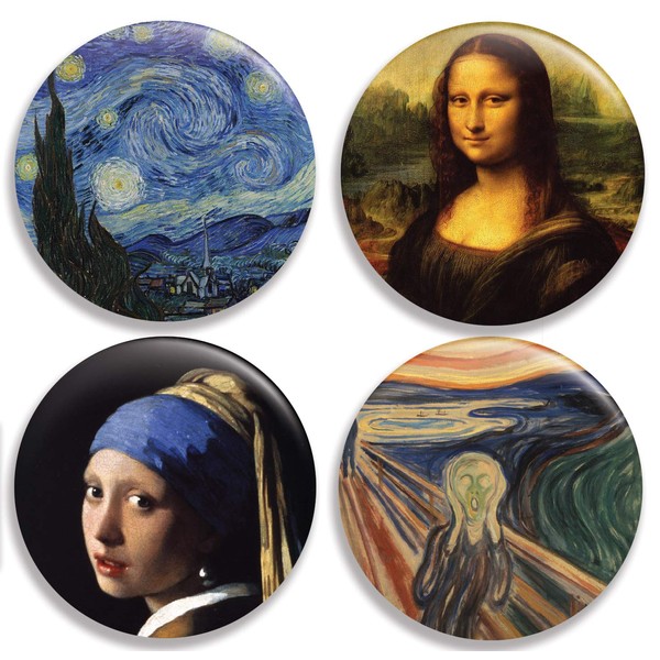 Famous Classic Artwork Paintings Pinback Buttons/Pins (2.25 inches) Set of 4