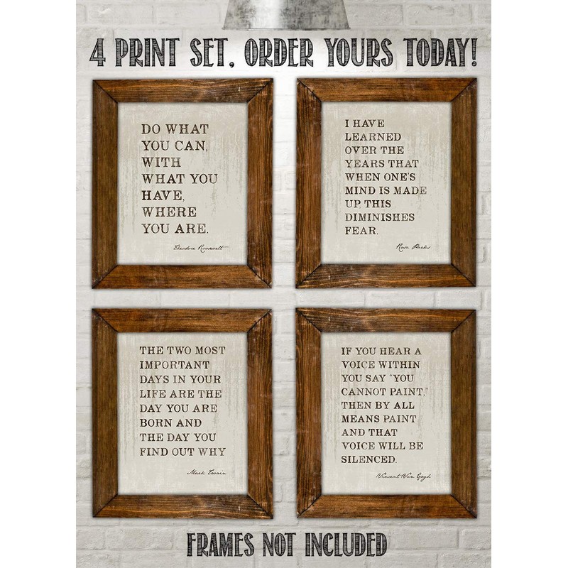 Famous Quotes Wall Art Set-4 (VG) 8 x 10"s Art Wall Prints- Eleanor Roosevelt, Rosa Parks, Mark Twain, Van Gogh-Ready to Frame. Home Décor, Studio & Office Décor. Perfect for Motivation & Inspiration.
