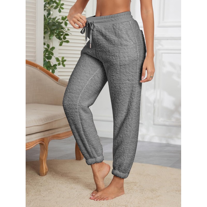 Famulily Thick Plush Sherpa Lined Jogging Bottoms Women's Comfortable Fluffy Winter Trousers with Elastic Band and Pockets Drawstring, darkgray
