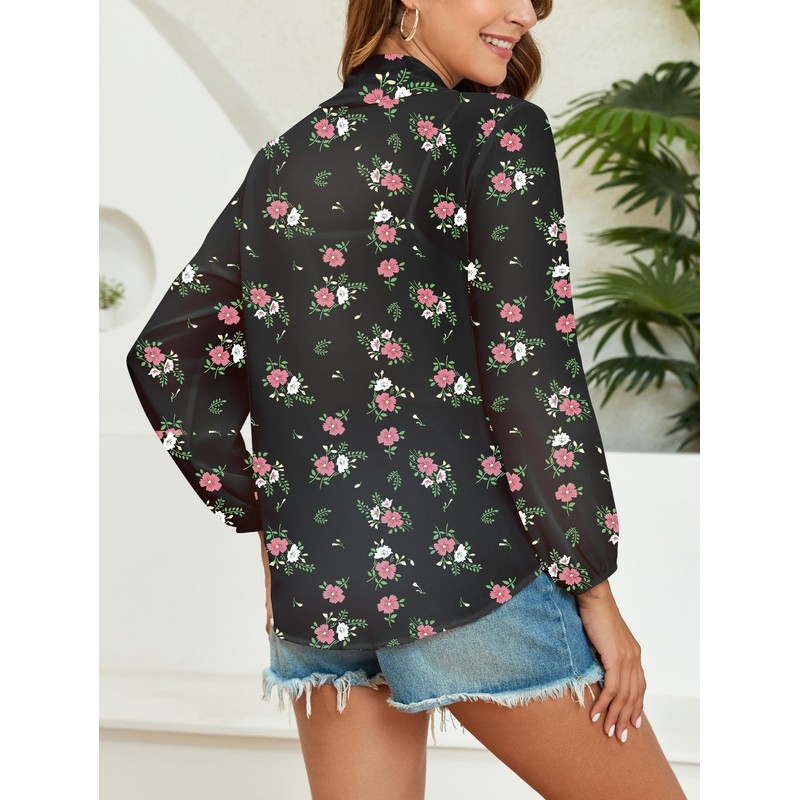 Famulily Womens Chiffon Cardigan Deep V Neck Floral Prints Tie Front Top Sheer Long Sleeve Casual Cardigans for Women Black Pink Flower M