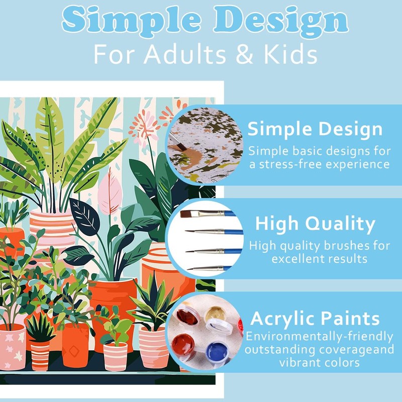 Fan House Paint by Numbers Adult Plants DIY Oil Painting Canvas Set with 4 Brushes and Acrylic Pigment for Home Decoration Birthday Christmas Gift - 40 x 50 cm (without Frame)