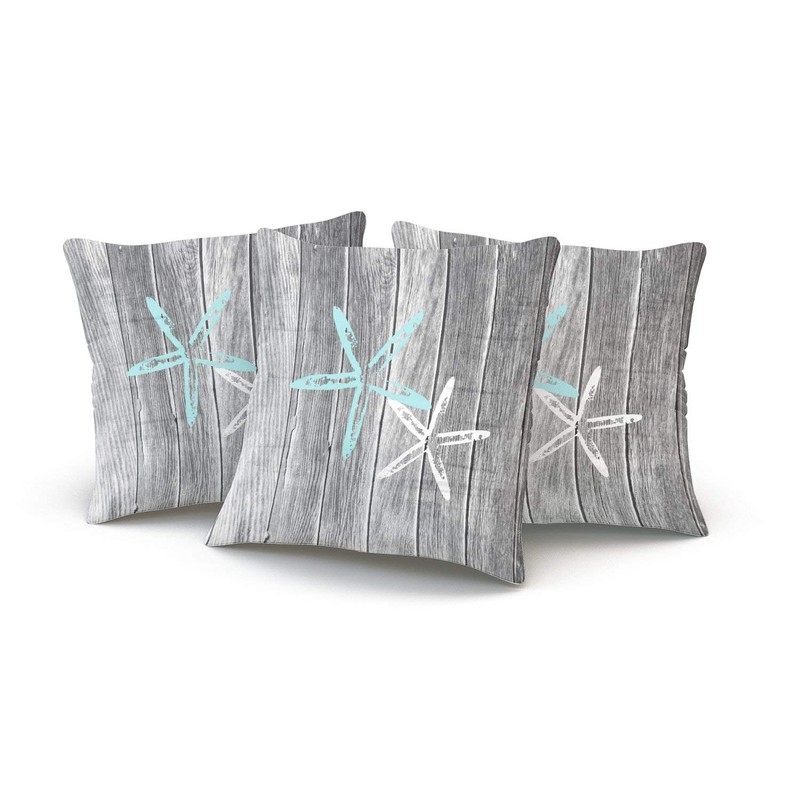 Fanaing Gray and Aqua Turquoise Beach and Starfish Pillowcase Home Sofa Decorative 18X18 Inch Square Throw Pillow Case Decor Cushion Covers One-Side Printed