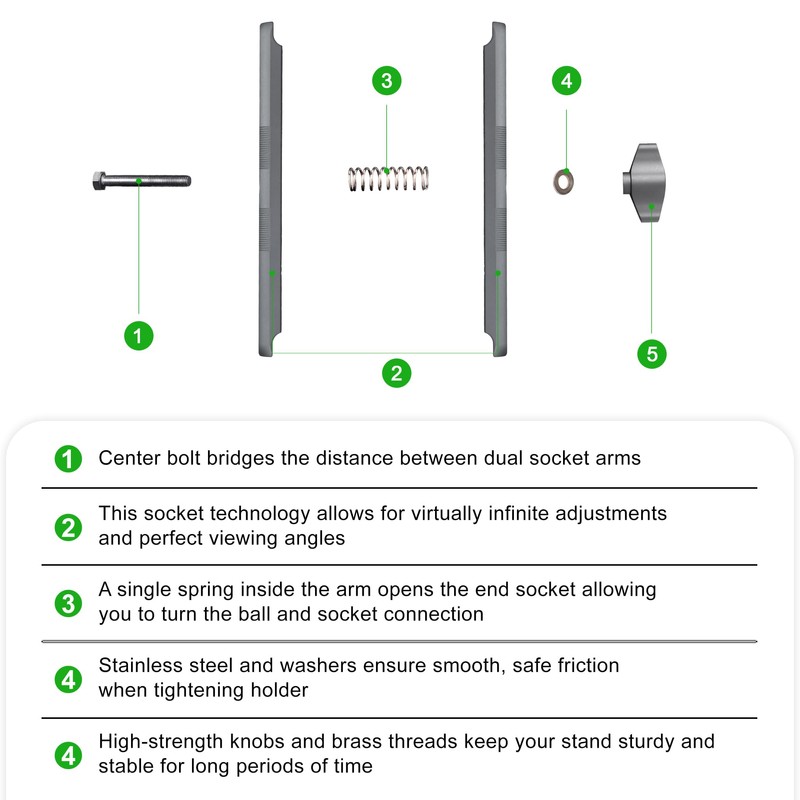 - 🍋【Long service life】High quality double socket arm combined with the characteristics of the product, using aluminum alloy, stainless steel, copper three kinds of materials, higher strength is not easy to damage, the surface of the III stage hard anodic oxidation treatment, smooth feel anti-corrosion rust, has a very good durability and carrying capacity, is motorcycle phone holder, bike phone holder mount, kayak phone mount, gps vehicle mounts and so on long-term use of a good choice.