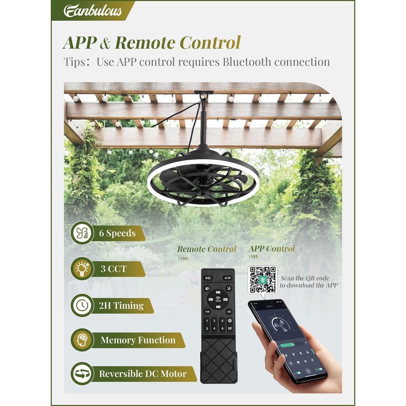 - [MOBILE HOOK INSTALLTION]: The Fanbulous pergola fan features a unique portable hanging design and a 16.5-foot power cord, plug-and-play, allowing you to effortlessly create your outdoor oasis wherever you desire, enhancing comfort and ambiance wherever you are. And the modular design makes it super easy to install, and you can get it done in just 30 minutes!