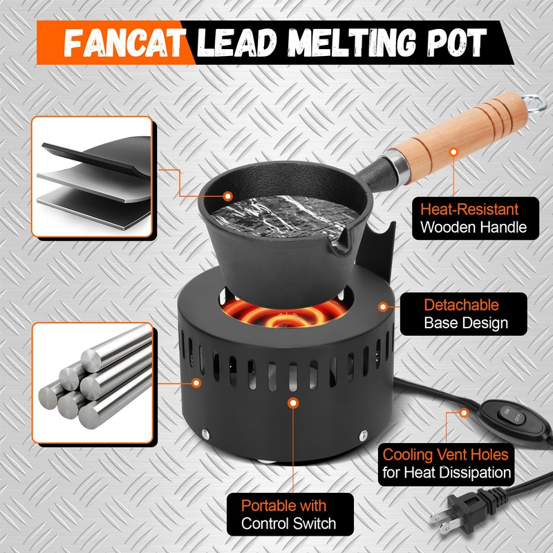 Fancat 5 lbs Electric Lead Melting Pot,Fast Lead Melting Pot for Fishing Mold Kit,Stainless Steel Base for Easy Separation.
