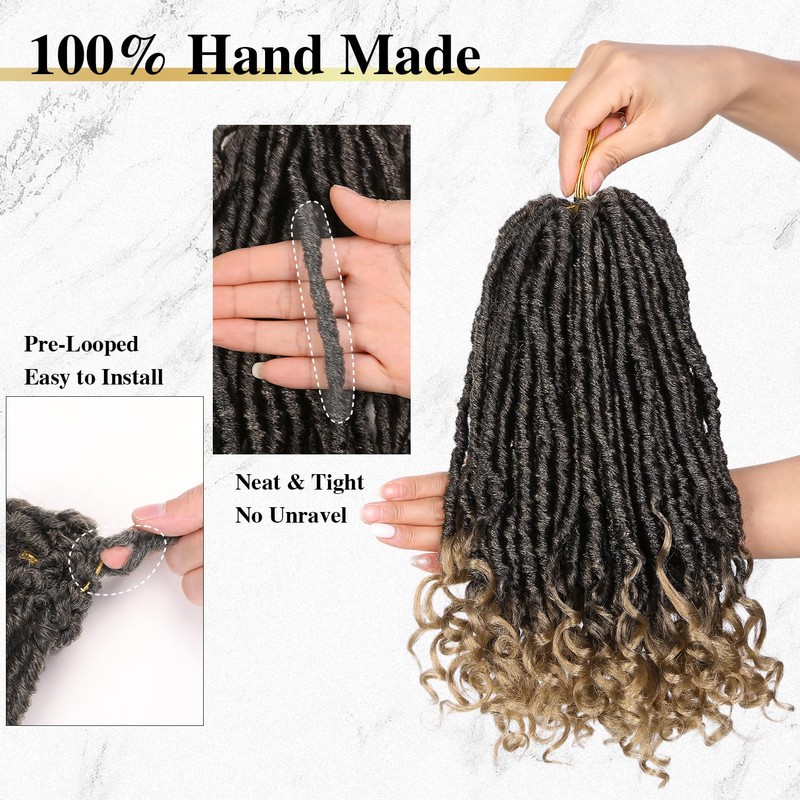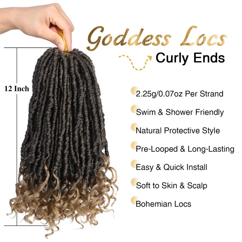 - 【Premium Material】 Goddess Locs Crochet Hair is 100% high-quality low temperature synthetic fiber. Pre-looped faux locs with curly ends say no to tangle, shedding or itchy. Very soft and comfortable.