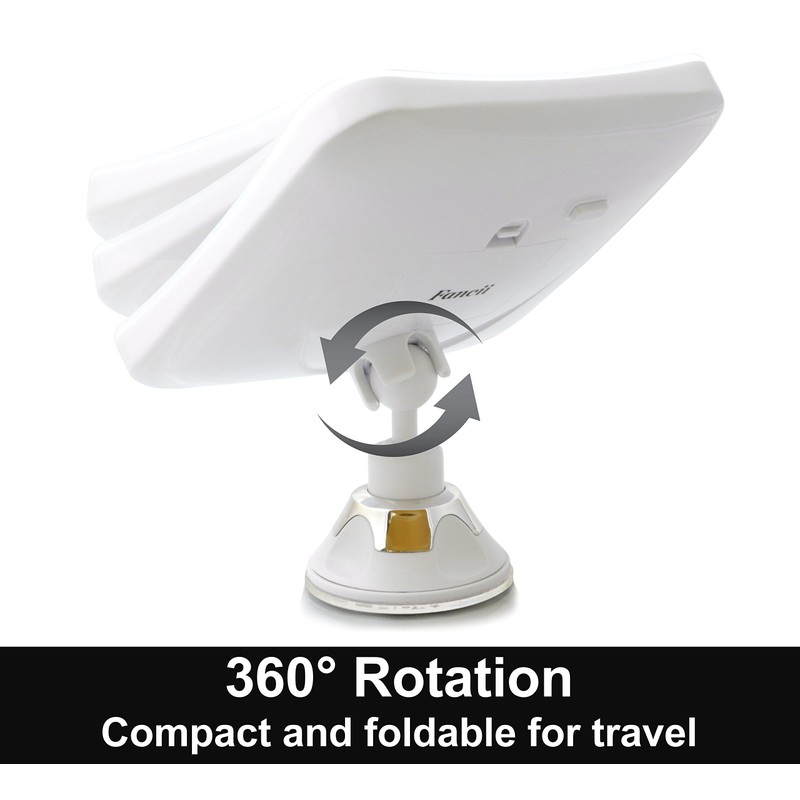 Fancii 10X Magnifying Lighted Makeup Mirror - Daylight LED Vanity Mirror - Compact, Cordless, Locking Suction, 6.5" Wide, 360 Rotation, Portable Illuminated Bathroom Mirror (Square)