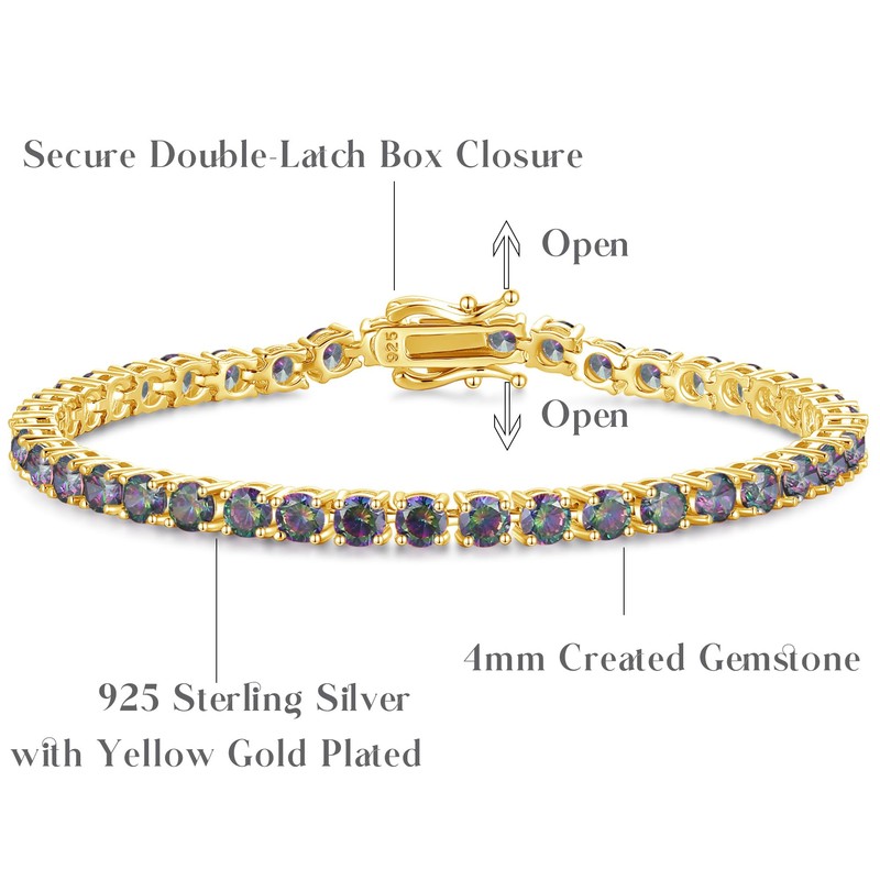 FANCIME 14K Gold Plated Women's Tennis Bracelet with Synthetic Gemstone, Birthstone Gift Jewellery for Her Ladies Girls, Length 19 cm, Sterling Silver, Alexandrite