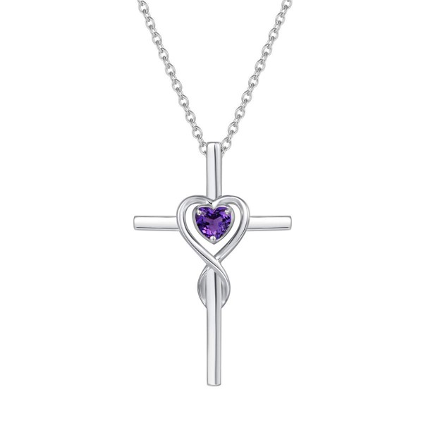 FANCIME 925 Sterling Silver Cross Infinity Heart Pendant Necklace with Natural Amethyst Gemstone Fine Jewellery for Women Girls - Chain Length: 16 + 2 Inch
